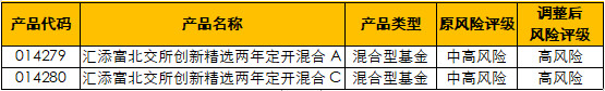 根據(jù)《證券期貨投資者適當性管理辦法》、《基金募集機構(gòu)投資者適當性管理實施指引(試行)》等相關(guān)法規(guī)以及我行《基金產(chǎn)品風險評價辦法》的要求,為切實履行投資者適當性義務(wù),保護投資者權(quán)益,我行決定自2025年8月20日起,調(diào)整部分代銷公募基金產(chǎn)品的風險等級,具體產(chǎn)品清單如下: